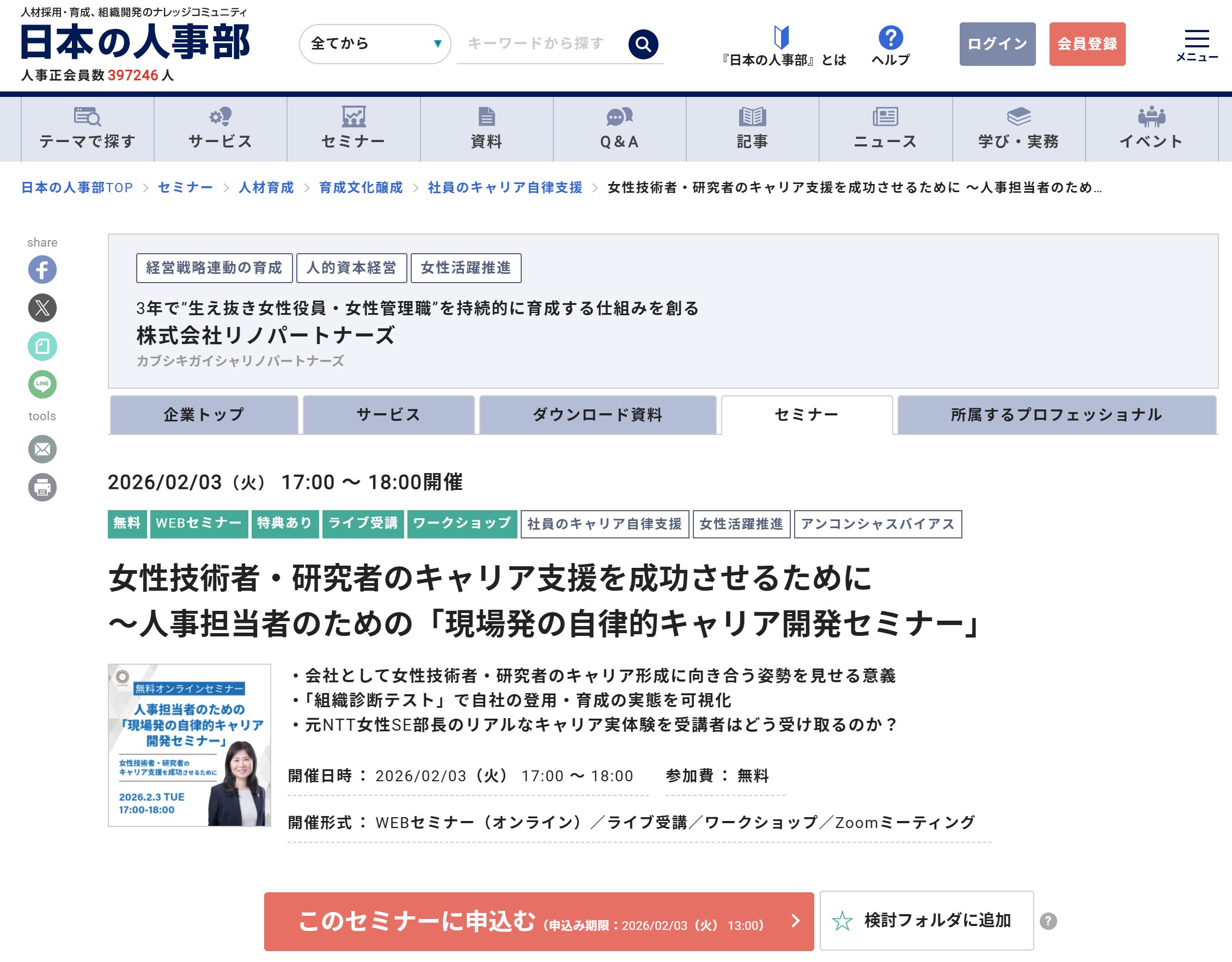 | 対象となる方 | 技術系企業の人事・ダイバーシティ推進担当者 |