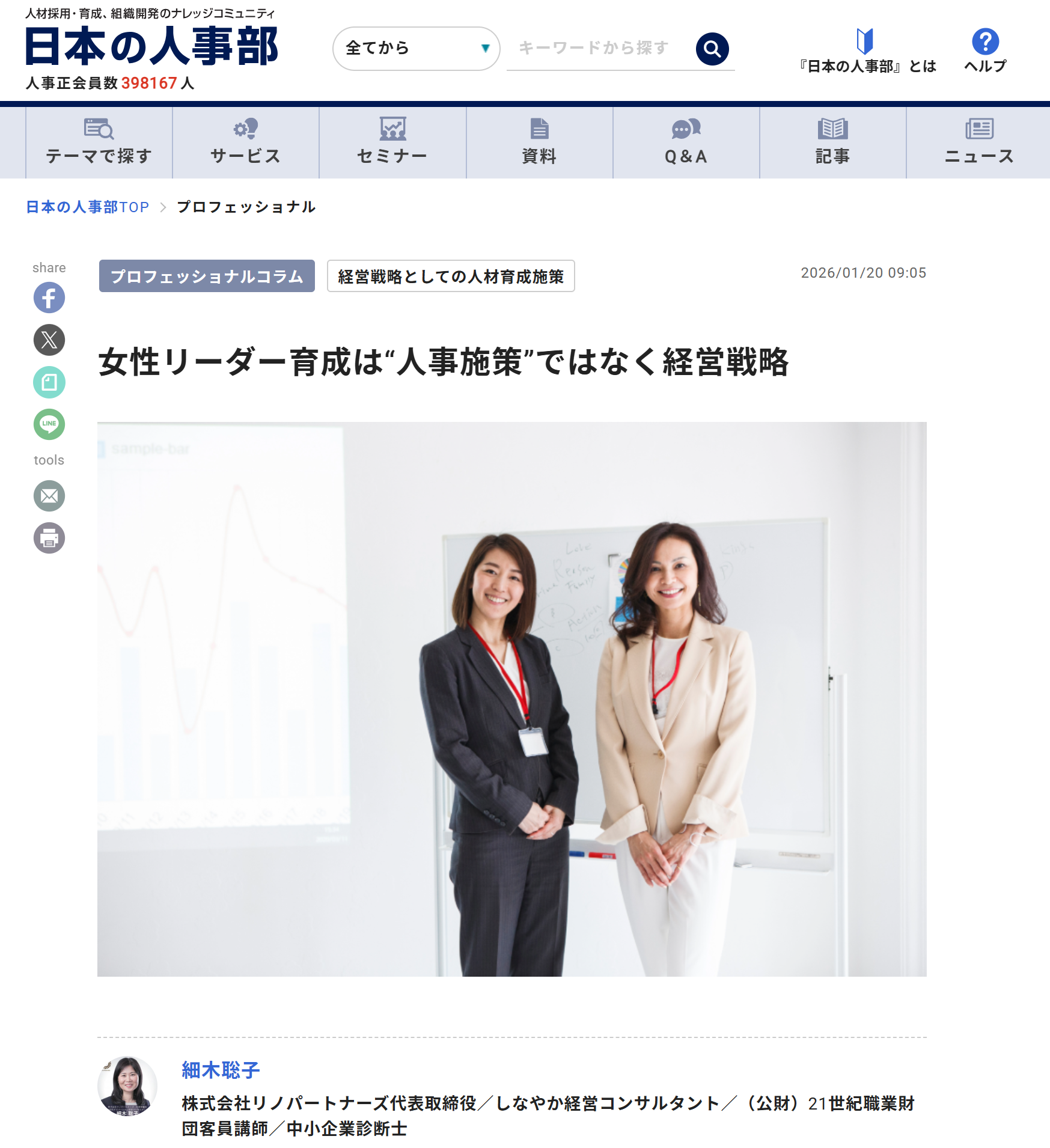 人事ポータル「日本の人事部」の専門家コラムに記事「女性リーダー育成は“人事施策”ではなく経営戦略」が掲載されました!