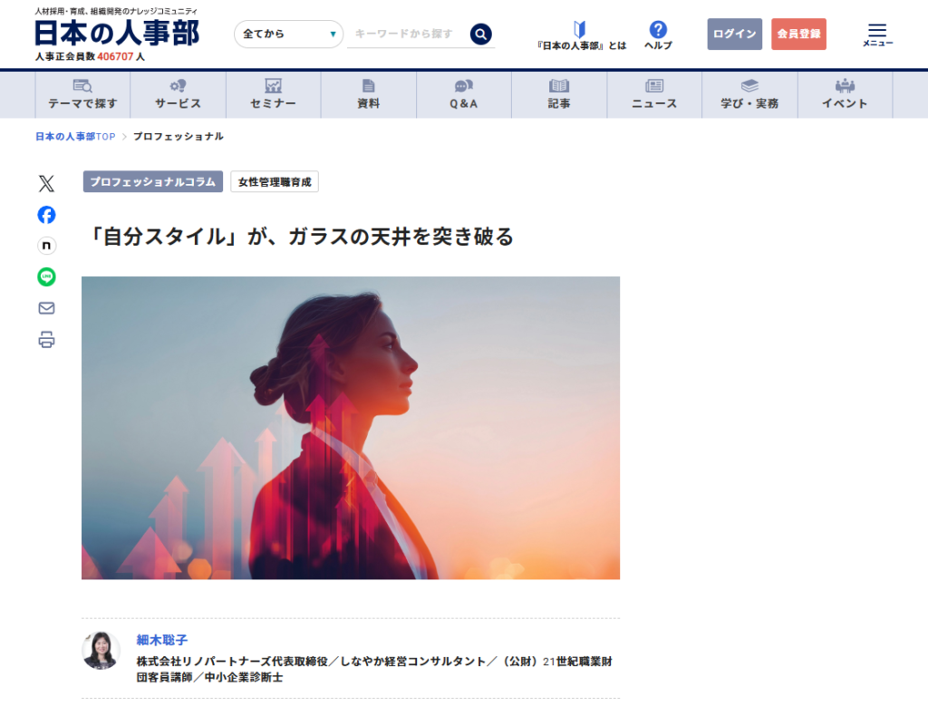 人事ポータル「日本の人事部」の専門家コラムに記事「「自分スタイル」が、ガラスの天井を突き破る」が掲載されました