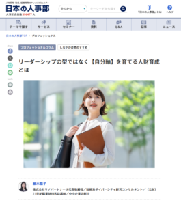 人事ポータル「日本の人事部」の専門家コラムに記事「リーダーシップの型ではなく【自分軸】を育てる人財育成とは」が掲載されました新着!!