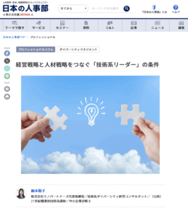 人事ポータル「日本の人事部」の専門家コラムに記事「技術系企業のダイバーシティ経営に必要な“3つのバランス”」が掲載されました