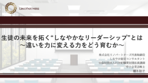 中高一貫の男子校として伝統ある巣鴨学園様よりご依頼をいただき、教職員の皆様に向けた勉強会に株式会社リノパートナーズ代表の細木聡子が登壇いたしました。 『生徒の未来を拓く“しなやかなリーダーシップ”とは ~違いを力に変える […]